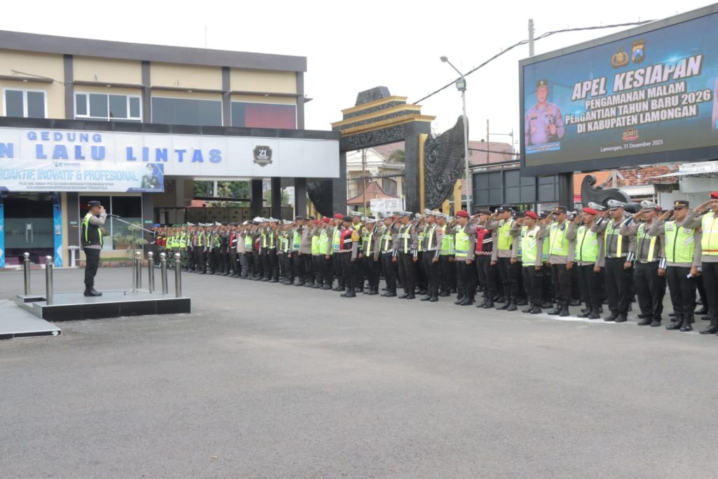 Lamongan, 31/12/2025 – Polres Lamongan menggelar kegiatan Apel Kesiapan Pengamanan Malam Pergantian Tahun Baru 2026 yang berlangsung di Lapangan Apel Mapolres Lamongan pada Rabu sore, (31/12).